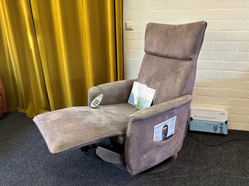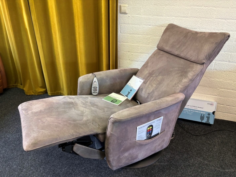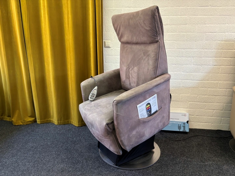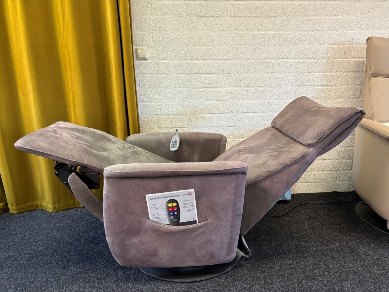 De stoel heeft een elektrisch verstelbare rug, verstelbare kuitsteun, een sta op functie en een slaap(lig)stand.