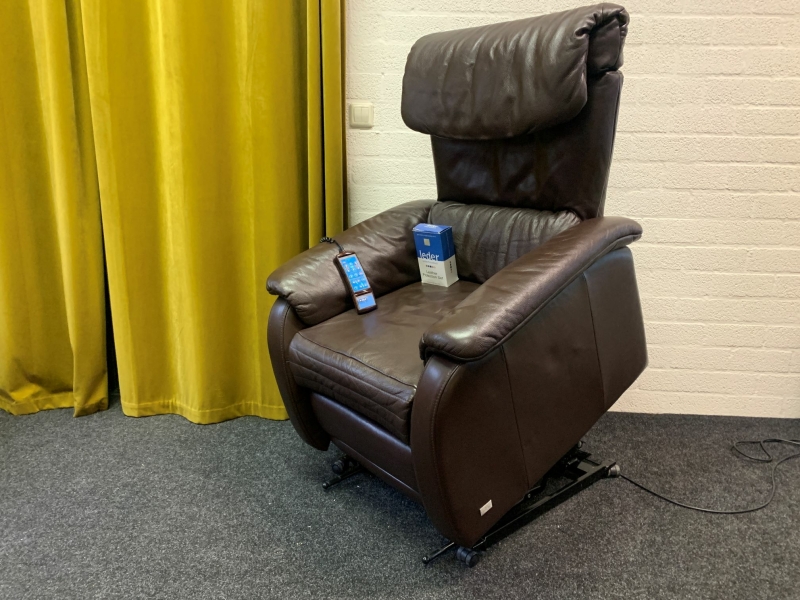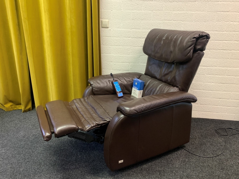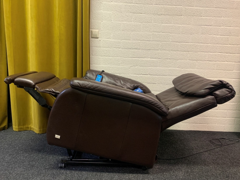 De stoel heeft een elektrisch verstelbare rug, verstelbare kuitsteun, een sta op functie en een slaap(lig)stand.